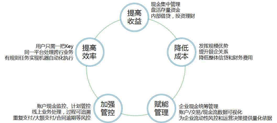 “财资e管家”系列产品帮助企业提高内部资金使用效率,法人账户透支为企业提供外部流动资金支持,内外结合,全方面提高客户财资管理能力,为企业创造价值。